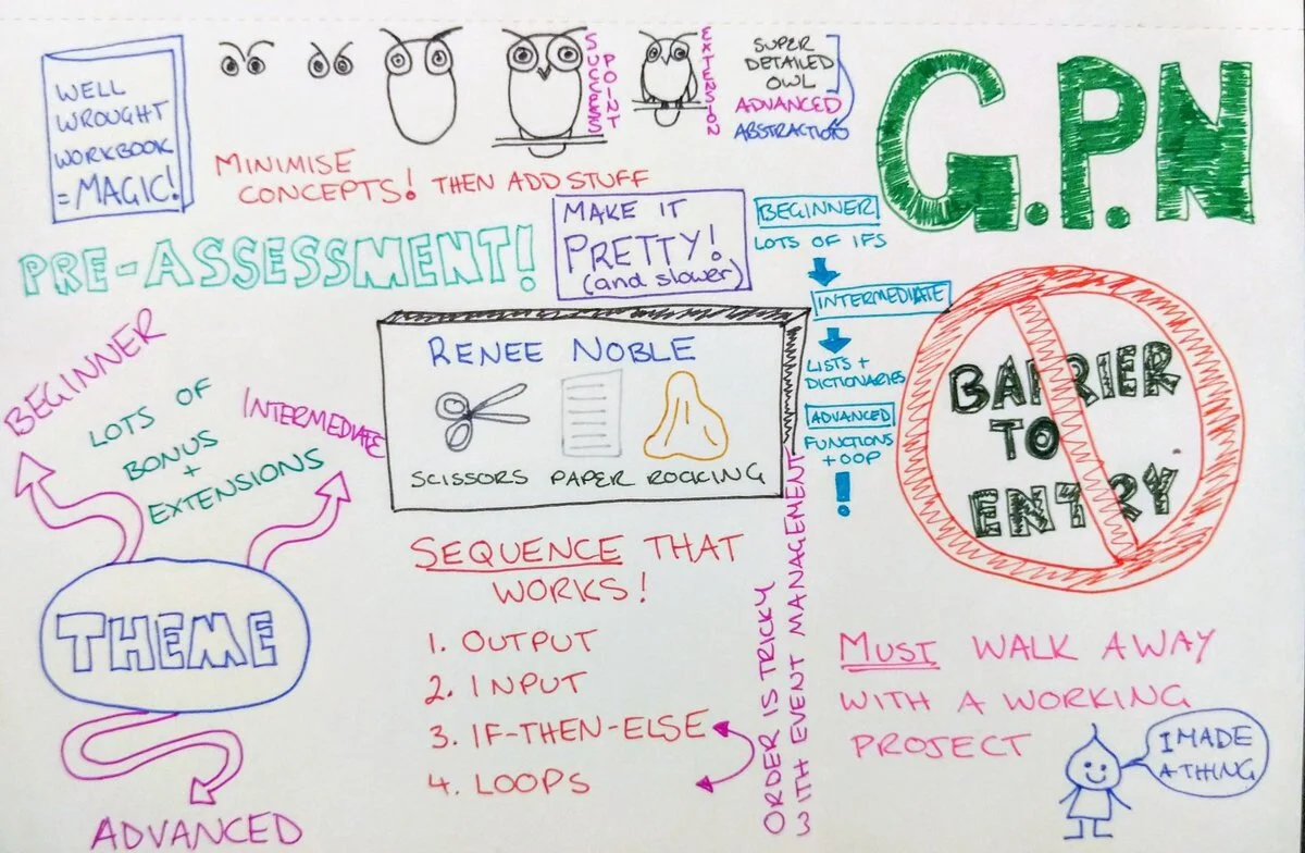 The GPN Scissors Paper Rock project sparked the ideas behind my methodology for creating differentiated content that was easy to learn from and easy to teach. Years on this project has become our flagship project which all new GPN nodes use to get off the ground.